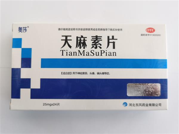 【成份】本品含天麻素25mg,輔料為:玉米淀粉,糊精,白糖,硬脂酸鎂