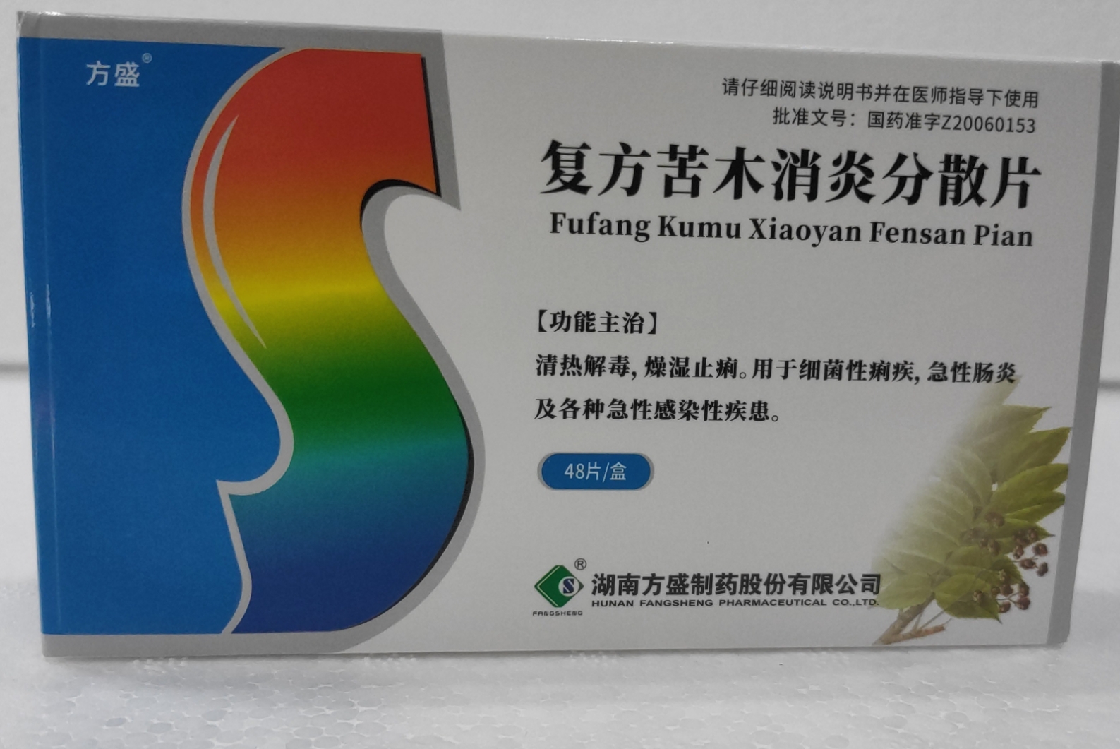 【產(chǎn)品名稱】(方盛)復(fù)方苦木消炎分散片48片