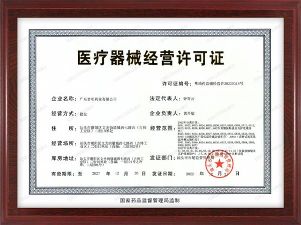 名稱: 醫(yī)療器械經(jīng)營許可證 類別: 榮譽證書