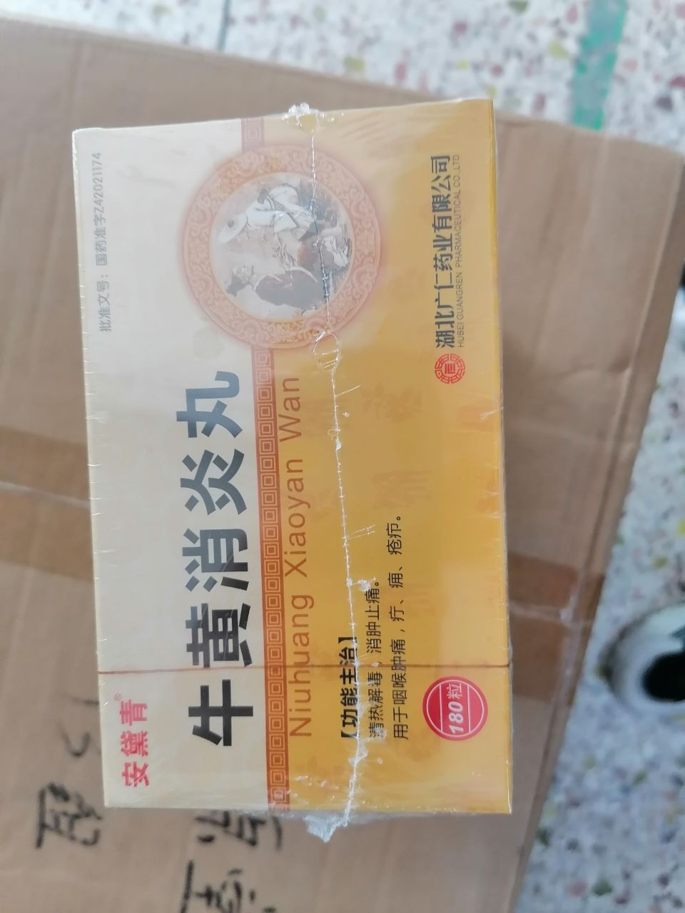 【成份】牛黃、珍珠母、蟾酥、青黛、天花粉、雄黃、大黃
