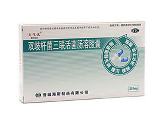 藥品名稱:雙歧桿菌三聯(lián)活菌腸溶膠囊 (貝飛達(dá)) 拼音簡碼:SQGJSLHJCRJN