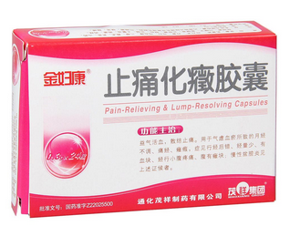 止痛化癥膠囊(金婦康) 0.3克×48片 通化茂祥制藥有限公司 國(guó)藥準(zhǔn)字Z22025500 活血調(diào)經(jīng)、殺菌消炎、止痛化癥、軟堅(jiān)散結(jié)。用于治療慢性盆腔炎、陰道炎、月經(jīng)不調(diào)、痛經(jīng)閉經(jīng)、白帶量多、子宮糜爛、色斑、腫塊、具有殺菌、消炎、止痛、化癥的療效。 口服,每日2-3次,每次4粒,2周一療程 全蝎、蜈蚣、魚腥草、三棱、丹參、當(dāng)歸、黃芪、延胡索等19味中藥精制而成。 本品為膠囊劑,內(nèi)容物為棕褐色或黑褐色顆粒,氣微香,味苦、微咸。 密封,置陰涼干燥處。