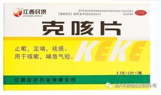 【商品名/商標】 江西民濟【規(guī)格】0.5g*12片*2板 【主要成份】麻黃,罌粟殼,苦杏仁,石膏,桔梗、甘草,萊菔子。輔料為蔗糖、淀粉、糊精。 【適應癥】 止嗽,定喘,祛痰。用于咳嗽,喘急氣短。【用法用量】口服。一次2片,一日2次。 【禁忌】高血壓及冠狀動脈病患者忌服。孕婦及哺乳期婦女忌服。兒童禁用。 【注意事項】1.忌煙、酒及辛辣、生冷、油膩食物。2.不宜在服克咳片期間同時服用滋補性中藥。3.虛喘者不適用。其表現(xiàn)為咳聲低弱,動則氣喘氣短,自汗怕風。4.本品中含麻黃,運動員慎用。5.年老體弱者應在醫(yī)師指導下服用。6.支氣管擴張、肺膿瘍、肺心病、肺結(jié)核患者出現(xiàn)咳嗽時應去醫(yī)院就診。7.心動過速、心臟病及失眠患者慎用。有肝病、糖尿病、腎病等慢性病嚴重者應在醫(yī)師指導下服用。8.服藥期間,若患者發(fā)熱體溫超過38.5℃,或喘甚,或咳嗽加重、痰量明顯增多者應去醫(yī)院就診。9.嚴格按用法用量服用,本品不宜長期服用。10.用藥3天癥狀無緩解,應去醫(yī)院就診。11.對本品過敏者禁用,過敏體質(zhì)者慎用。12.本品性狀發(fā)生改變時禁止使用。13.請將本品放在兒童不能接觸的地方。14.如正在使用其他藥品,使用本品前請咨詢醫(yī)師或藥師。 【藥物相互作用】如與其他藥物同時使用可能會發(fā)生藥物相互作用,詳情請咨詢醫(yī)師或藥師。 【生產(chǎn)廠家】江西民濟藥業(yè)有限公司 【批準文號】國藥準字Z20050040 【生產(chǎn)地址】江西省銅鼓縣迎賓大道168號